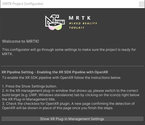 [Show XR Plug-in Management Settings] を押すとプロジェクト設定が立ち上がります。