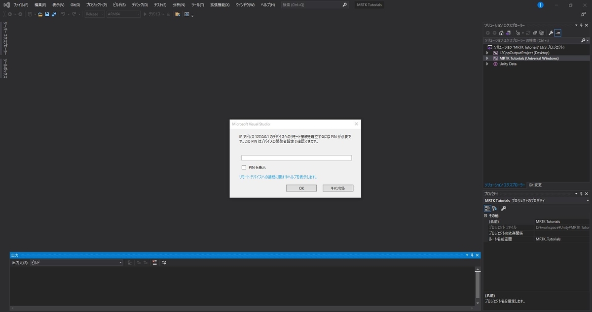 設定が終わったらホロレンズ本体とパソコンを接続しましょう。 初回のみVisual StudioとHoloLens 2のペアリングを求められます。