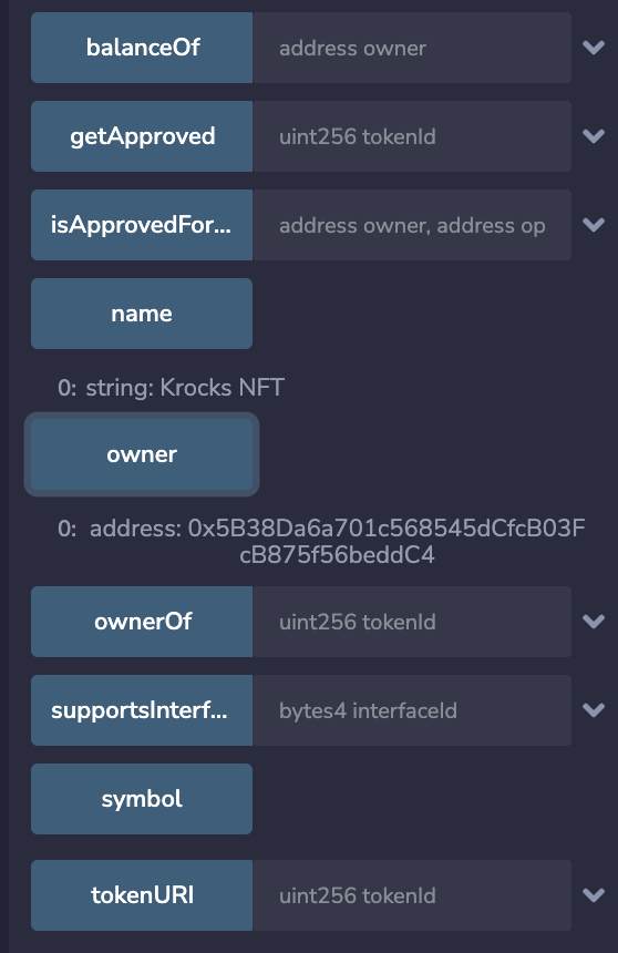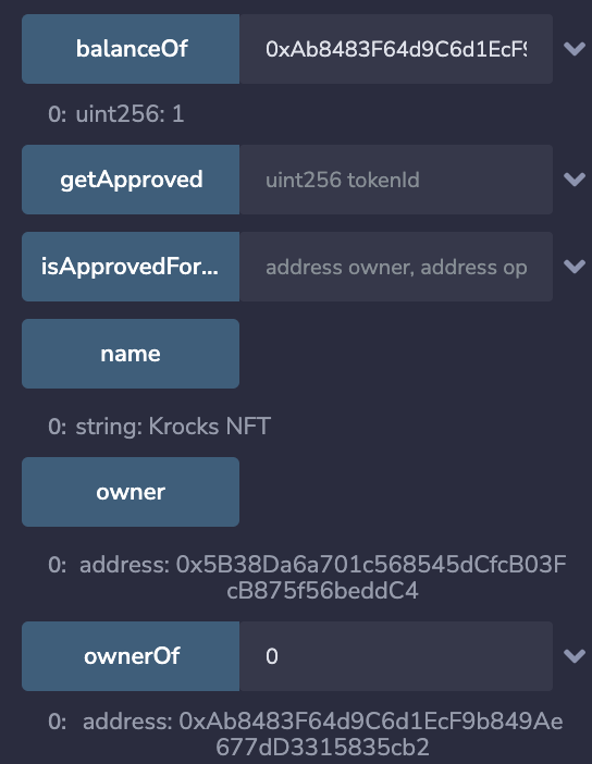分かりづらいですが、0xB〜がコントラクトのオーナー、0xA現在の所有者になります。