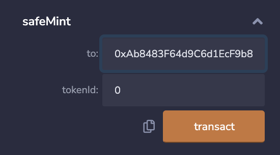 このトークンはまだmintされていないのでsafeMintを実行します。