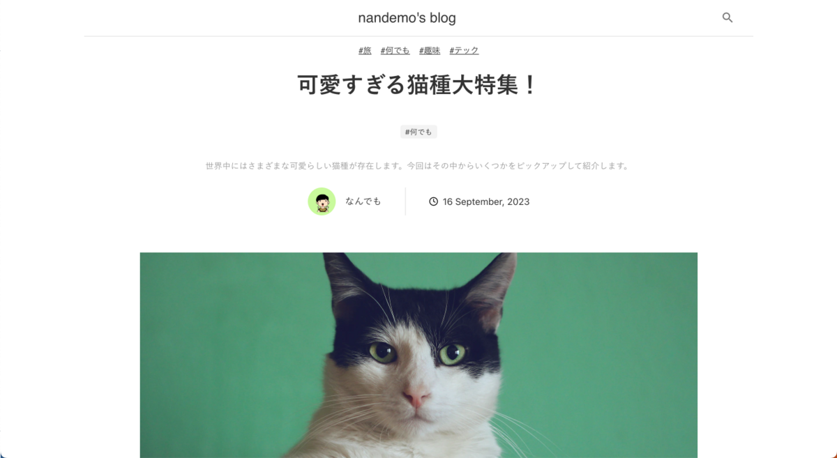 デプロイが完了し、 管理画面にて、タグ、ライター、記事を追加すると、以下のような画面になります。